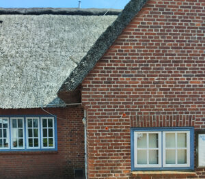 Die Baugewerkschule Eckernförde erbaute 1936 am Kurstrand ein reetgedecktes Gebäude. Kennzeichnend für den um 1900 entstandenen Heimatschutzstil ist die Verwendung ortsüblicher Baumaterialien (z. B. Backstein) und der Verzicht auf verzierende Attribute, die ältere Baustile nachahmen.